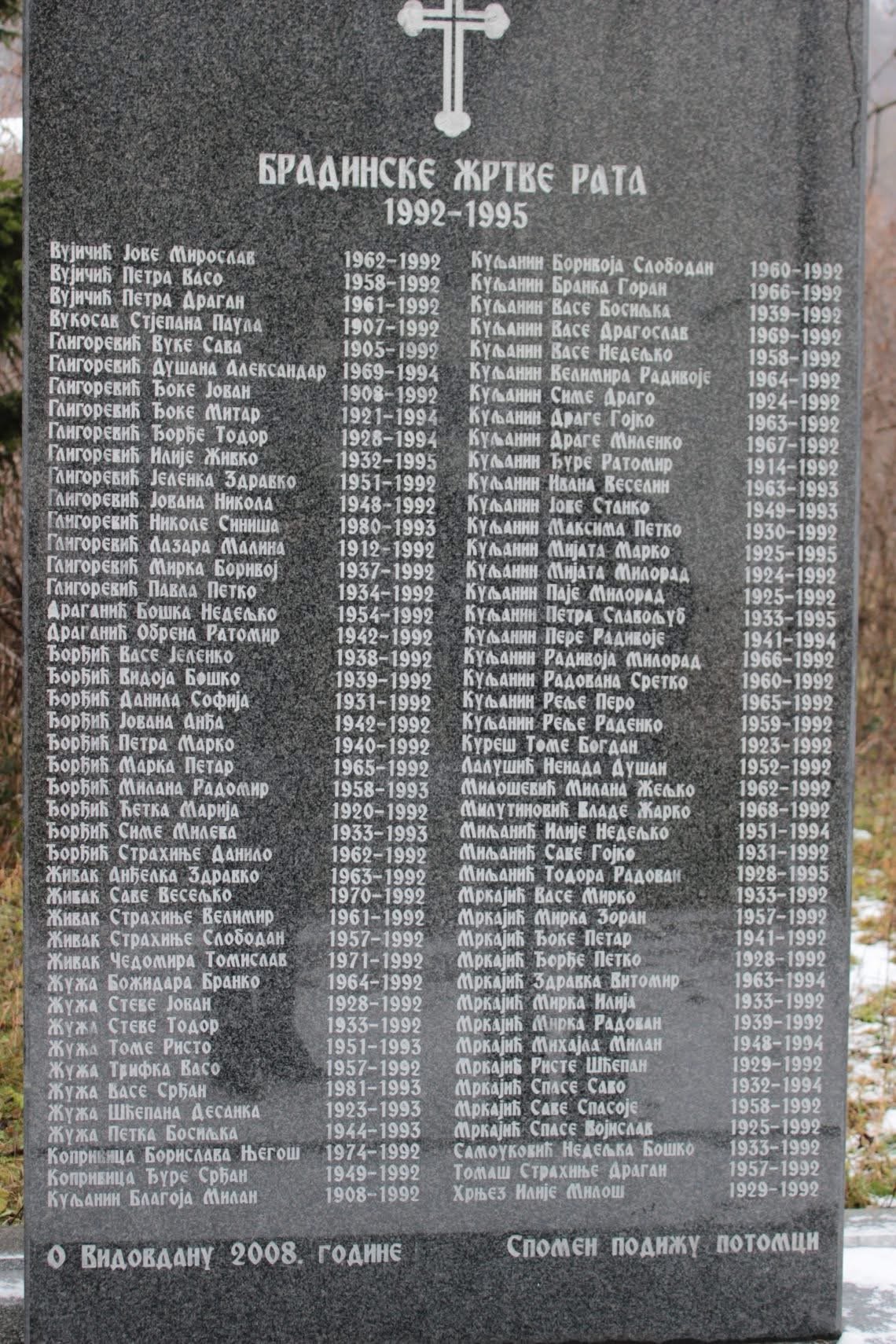 Potpuno „ispod radara“ je, svih ovih godina poslije rata, bio Konjic. Taj gradić u Hercegovini je na svojoj teritoriji imao dva koncentraciona logora, „Musala“ i „Čelebići“, a „ratnici“ iz Konjica su pobili sve što se moglo pobiti u srpskom selu Bradina. Zločin u Bradini je neoborivi dokaz i školski primjer lokalnog genocida. Sve civilne, policijske i paravojne vlasti u Konjicu maja 1992. su bile upoznate i povezane sa etničkim čišćenjem Srba iz Bradine, koncentracionim logorima „Musala“ i „Čelebići“, te monstruoznim strijeljanjem četvoročlane porodice Golubović.